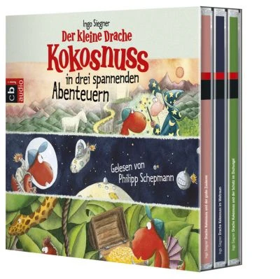 Neue limitierte Hörbuch-Box! Drei spannende Abenteuer vom kleinen Drachen Kokosnuss in einer Box: Gemeinsam mit seinen Freunden trifft Kokosnuss Zauberer Holunder, reist ins All und stößt im Dschungel auf einen sagenumwobenen Schatz.In der Box sind die drei Titel „Kokosnuss und der große Zauberer“, „Kokosnuss im Weltraum“ und „Kokosnuss und der Schatz im Dschungel“ enthalten.(3 CDs, Laufzeit: 2h 30)